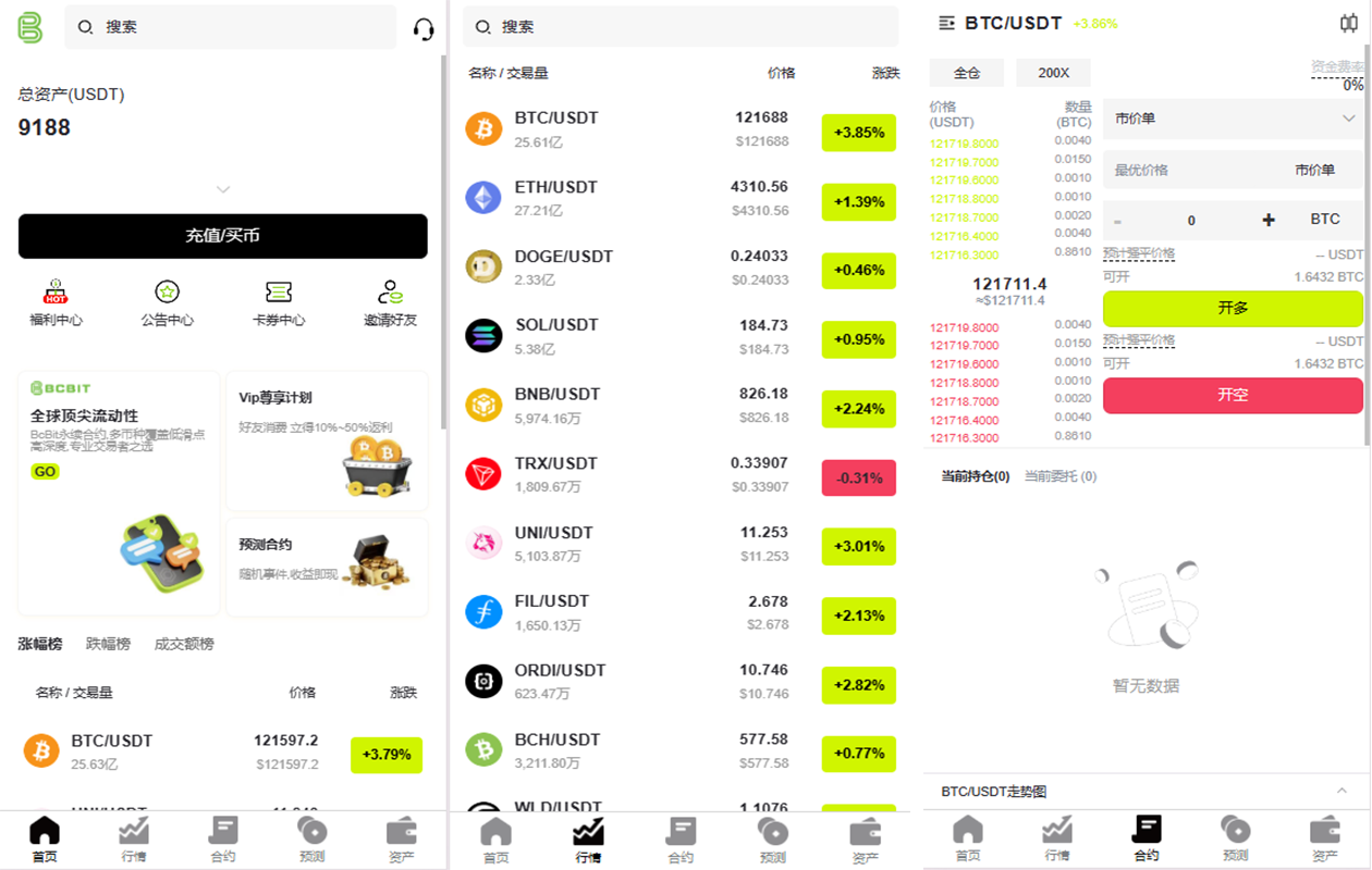 - 覆盖主流加密货币(BTC/ETH/U等)与法币交易对